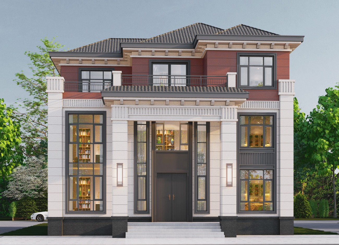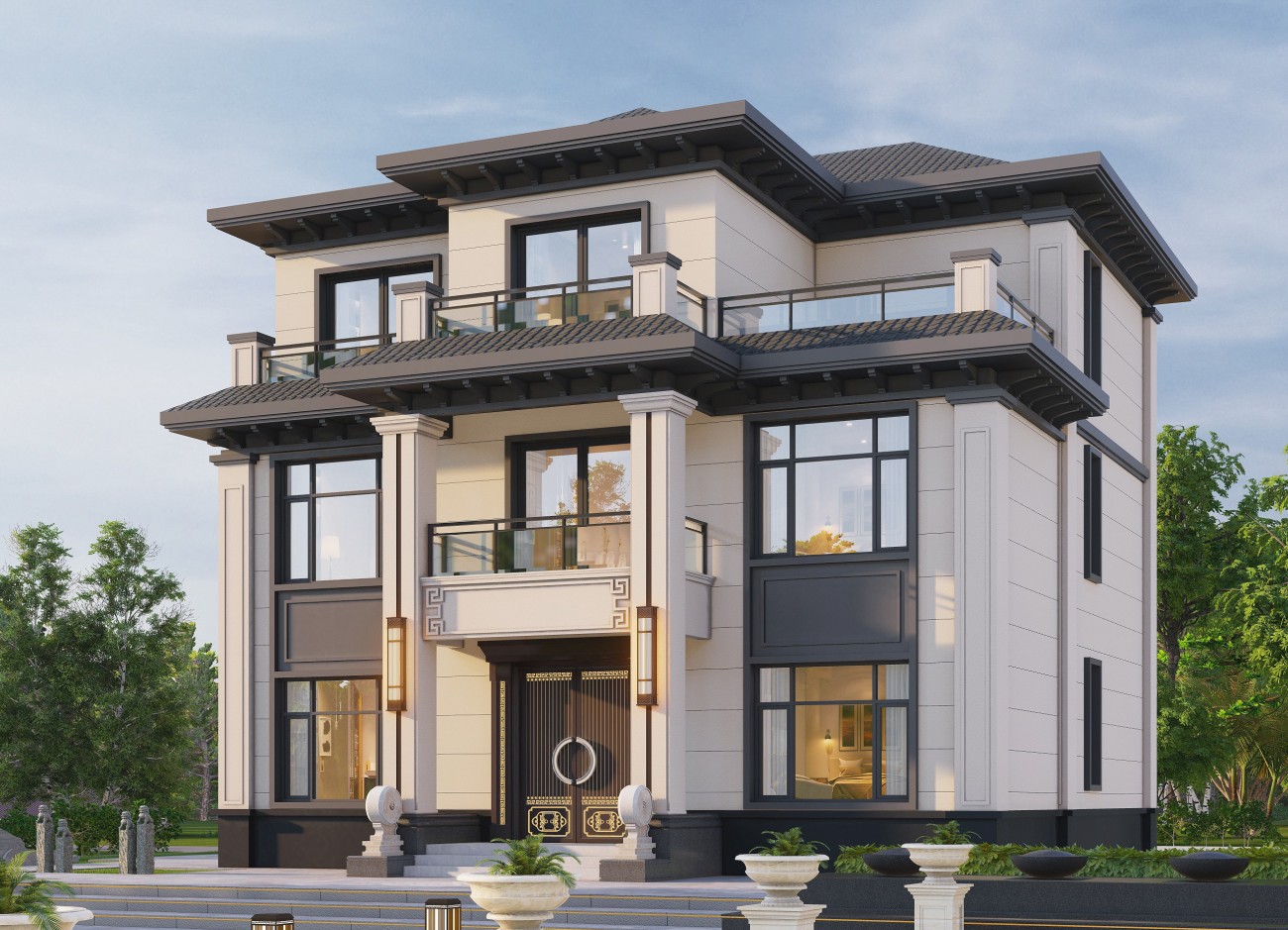 炉霍12 新中式两层半(12.8x13.06米)-【易设计】